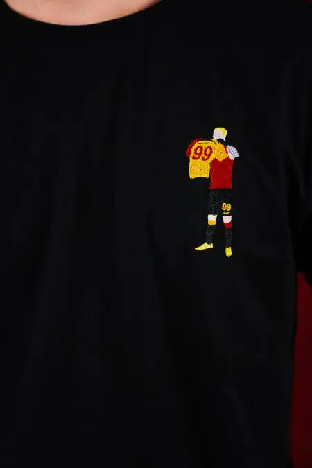 Bu maçı ne kadar anlatsak, bu maçla ilgili ne yapsak az kalır. Türk futbolunun kulüpler bazındaki en önemli maçı, en büyük kupası. 1997 yılında Barcelona’dan İstanbul’a gelip parçalı formaya imza atan Rumen futbolcu o kupaya giden yolun en önemli isimlerinden birisi olsa da Kupayı sarı kırmızıya boyayacak son penaltı için topun başına geçtiğinde Türkiye’de 65 milyon tek yürek televizyon başındaydı. Çalan telefonun zil sesiyle birlikte gelen gol sonrası TRT spikeri bağırdı Kupa Bizim. Bu gol Kupayı parçalı formaya getirirken tüm Türkiye’yi de sokağa döktü. Gole çevirdiği penaltı sTüm ürünleronrası takım arkadaşlarına koşan Rumen savunmacıyı sizin için regular size, siyah renk, %100 pamuklu 1. kalite süprem penye kumaşın üzerine 15.000 iğne darbesi ile işledik.